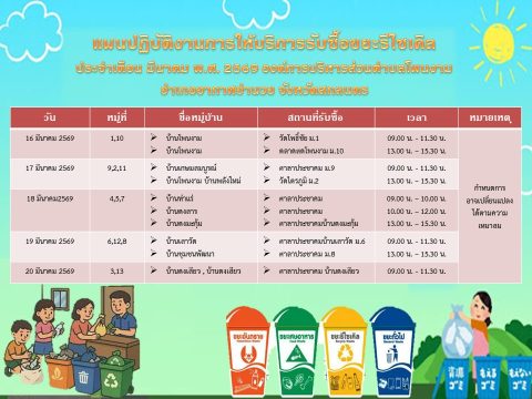 แผนปฏิบัติงานการให้บริการรับซื้อขยะรีไซเคิล ประจำเดือน ธันวาคม พ.ศ.2568