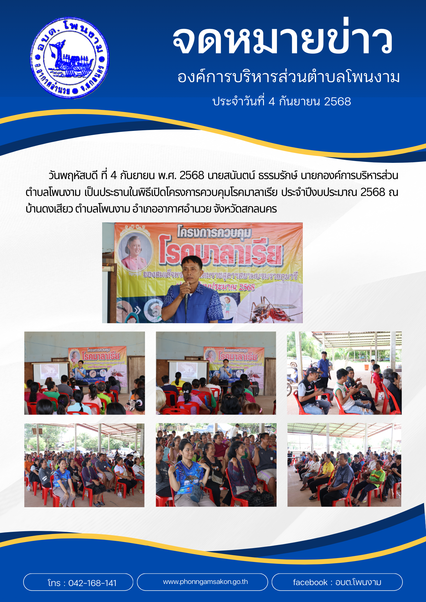 จดหมายข่าว องค์การบริหารส่วนตำบลโพนงาม ประจำวันที่ 4 กันยายน 2568