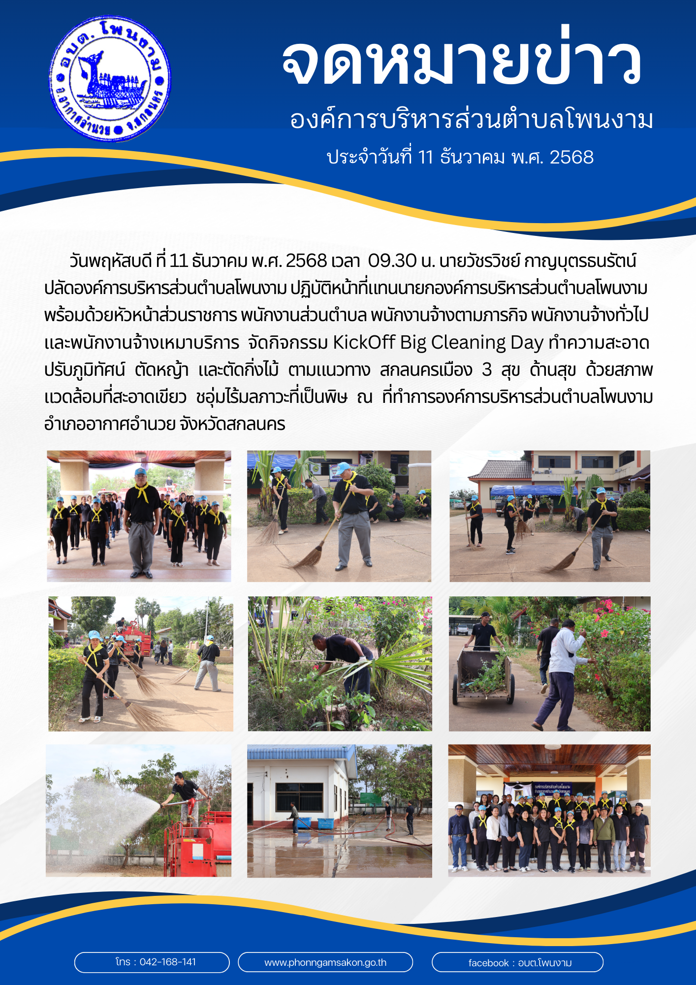 จดหมายข่าว องค์การบริหารส่วนตำบลโพนงาม ประจำวันที่ 11 ธันวาคม พ.ศ. 2568