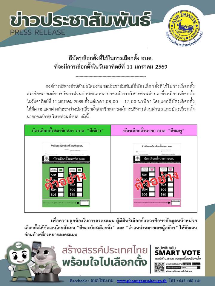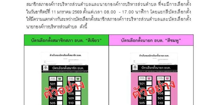 Posted in ข่าวประชาสัมพันธ์, ข่าวเด่น สีบัตรเลือกตั้งที่ใช้ในการเบือกตั้ง อบต. ที่จะมีการเบือกตั้งในวันอาทิตย์ที่ 11 มกราคม 2569 admin