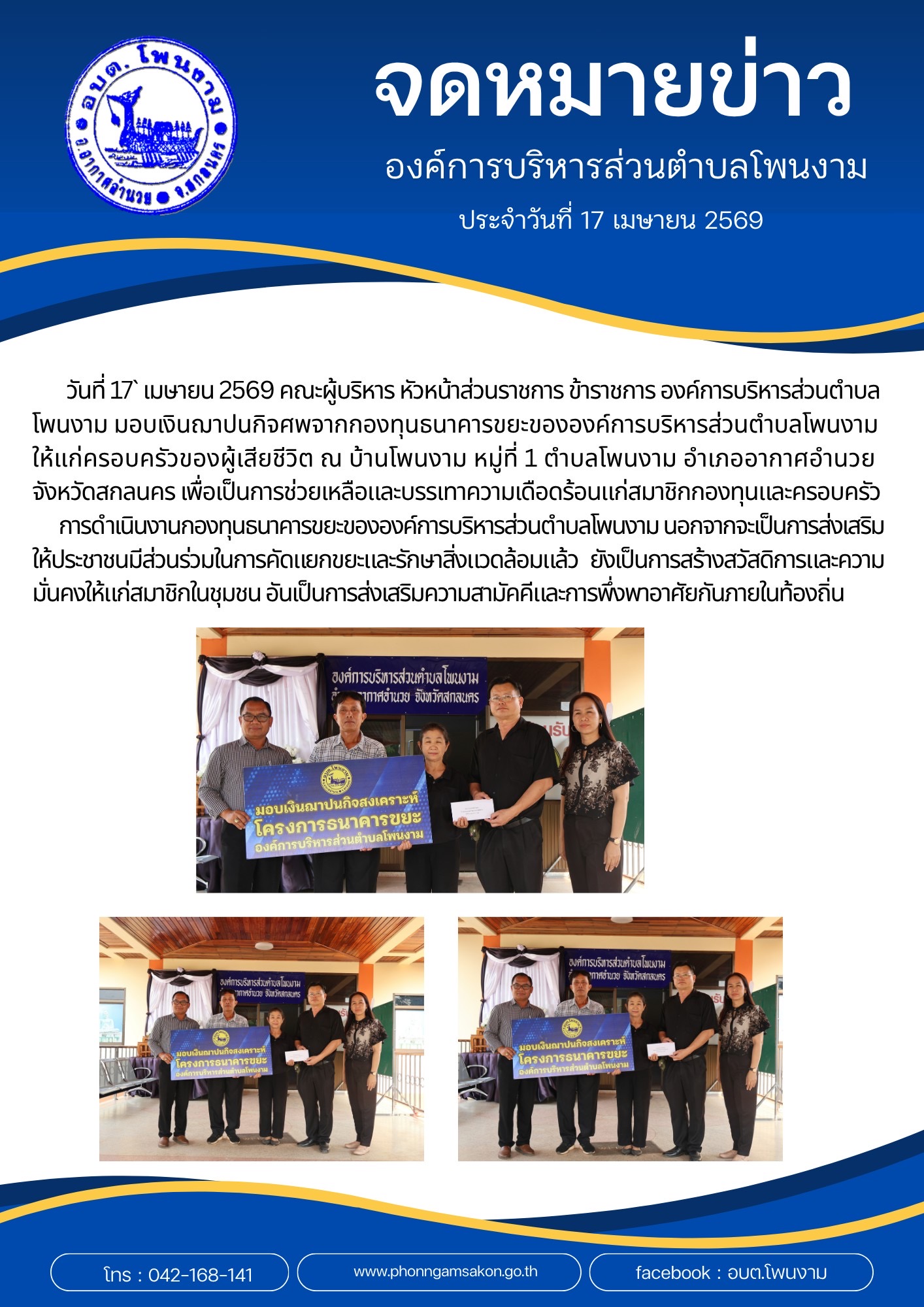 องค์การบริหารส่วนตำบลโพนงาม ประจำวันที่ 17 เมษายน 2569